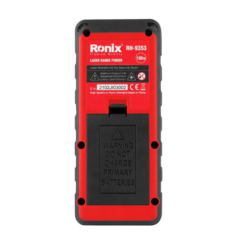 متر لیزری 100 متری نور قرمز رونیکس کد RH-9353 برای اندازه‌گیری و فاصله‌یابی دقیق نقاط مختلف مورد استفاده قرار می‌گیرد. از این ابزار اندازه‌گیری پرکاربرد رونیکس در خانه، صنایع مختلف و ساختمان‌سازی برای اندازه‌گیری طول، مساحت، حجم، ارتفاع غیر مستقیم (فیثاغورث تک-دوبل-مقطعی) و … استفاده می‌شود.