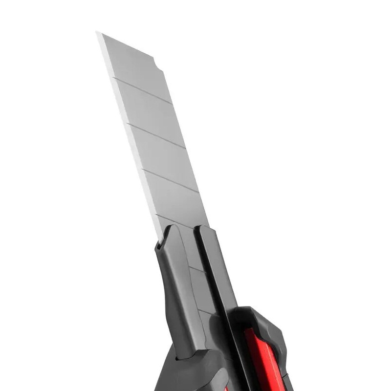 کاتر 18 میلیمتری مدل ALPHA رونیکس کد RH-3008 بدنهای آلومینیومی دارد و تیغه تیز آن میتواند برشهای باکیفیتی را ایجاد کند. این ابزار دارای دسته پلاستیکی ABS ارگونومیک است که برای ایجاد ایمنی و گیرایی بیشتر کاتر طراحی شده است. فریم و بدنه این ابزار با روکش سیاه پوشیده شده است که دوام بالای آن را تضمین میکند.